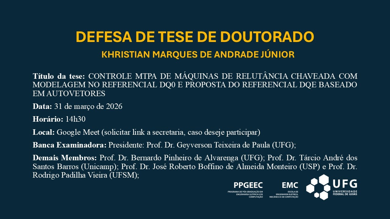 Título da tese: CONTROLE MTPA DE MÁQUINAS DE RELUTÂNCIA CHAVEADA COM MODELAGEM NO REFERENCIAL DQ0 E PROPOSTA DO REFERENCIAL DQE BASEADO EM AUTOVETORES